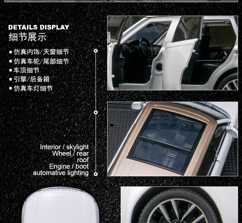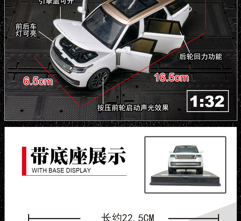 Product weight: about 300gProduct size: 16.5x6.5x5.5cmMaterial: zinc alloy (shell) plastic (chassis) rubber (tire)