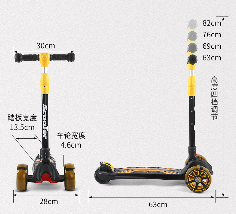 Product description:Brand: Hualei BeibeiMaterial: Aluminum tube + thickened aluminum alloy rodLoad-bearing capacity: 150 kgColor: pink, yellow, blueSuitable age: 1-14 years oldAdjustable in 4 gearsWheel width: 4.6 cm