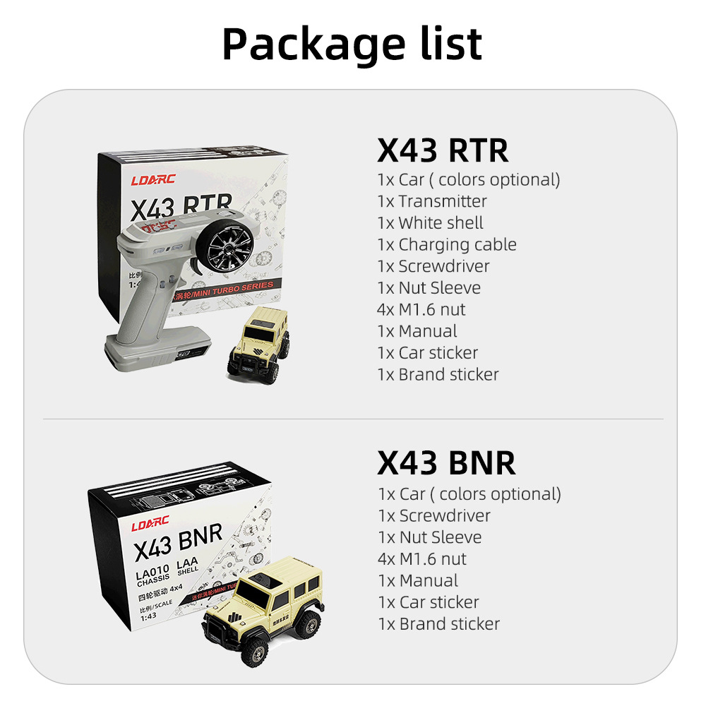 LDARC Radiant X43 Off-road 1/43 Mini Climbing Car 4WD Wrangler RC Remote Control Model Car