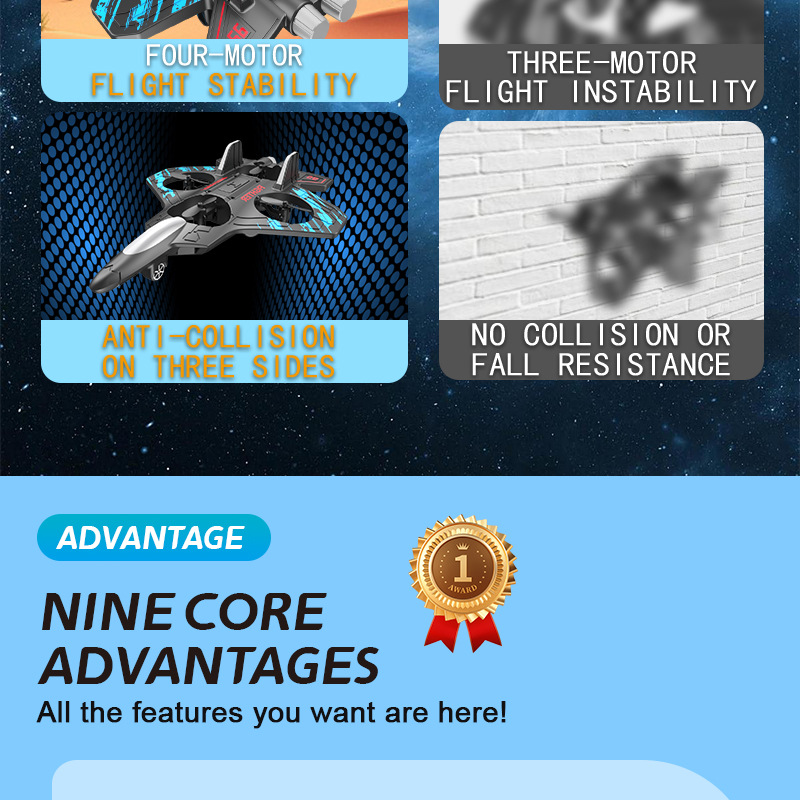 Product attributes Size: 30-50CM Type: Aircraft Place of origin: Guangdong, China Applicable people: unlimited Features: quadcopter, stunt performance Packaging: color box Channel: 6 channels Toy material: EVA/foam Ability training: vision, intellectual development, hands-on and brain-based, grasping, interactive toys, parent-child communication Is there a shopping guide video: yes Remote control method: handle Is it exclusively for foreign trade: yes Color: blue handle remote control, green handle remote control, blue gravity remote control, green gravity remote control Take-off weight: 0-250g (not included) Maximum flight altitude: 0~120 meters (inclusive) Empty weight: 0-1.5kg (inclusive) Main downstream platforms: ebay, Amazon, wish, AliExpress, independent station, LAZADA Main sales areas: Africa, Europe, South America, Southeast Asia, North America, Northeast Asia, Middle East Is it a dedicated source for cross-border export: yes Applicable age: teenagers (7-14 years old)