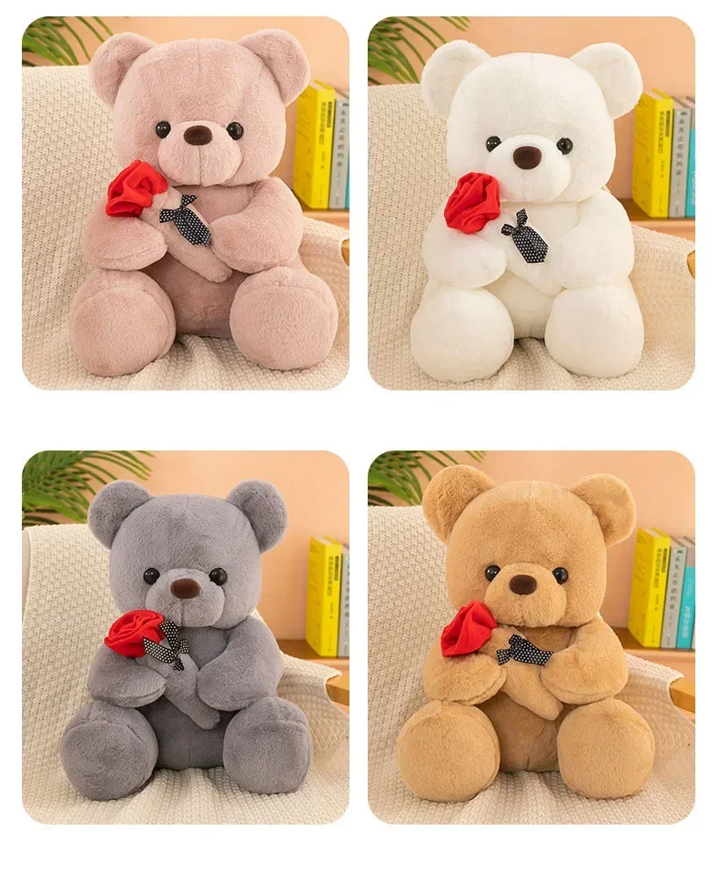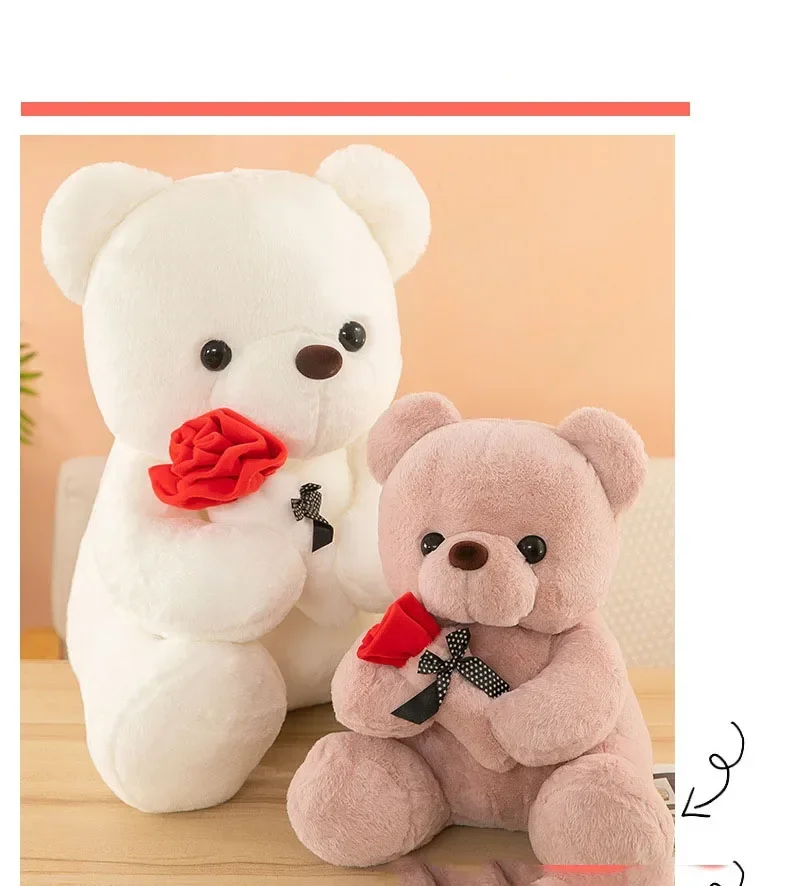 25-45CM Cute flower hugging rose bear doll kid plush toy