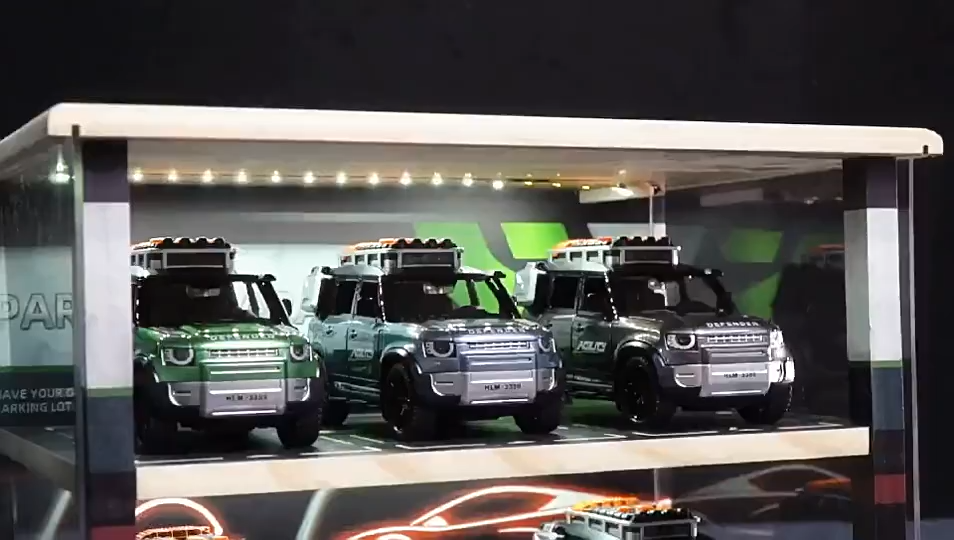 Children's toy car, boy's realistic inertial car model, can open doors, lights, music, acrylic transparent box