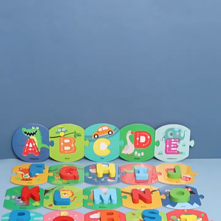 Hot selling English letter card splicing 3D matching puzzle for children's educational early childhood education wooden animal puzzle