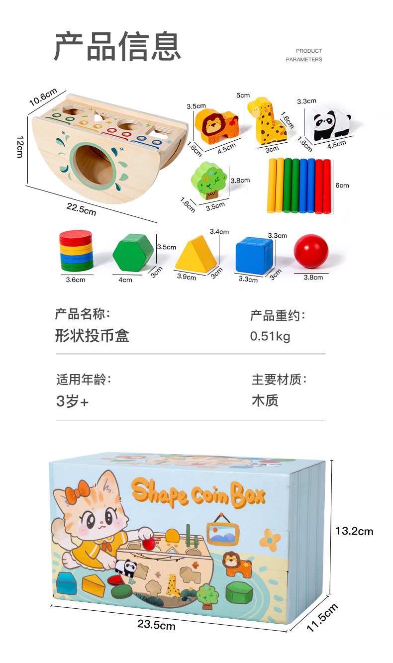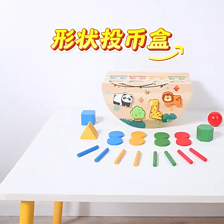 Montessori Multifunctional Matching Children's Early Education Wooden Intelligence Box Coin Box Number and Shape Matching Puzzle Toy