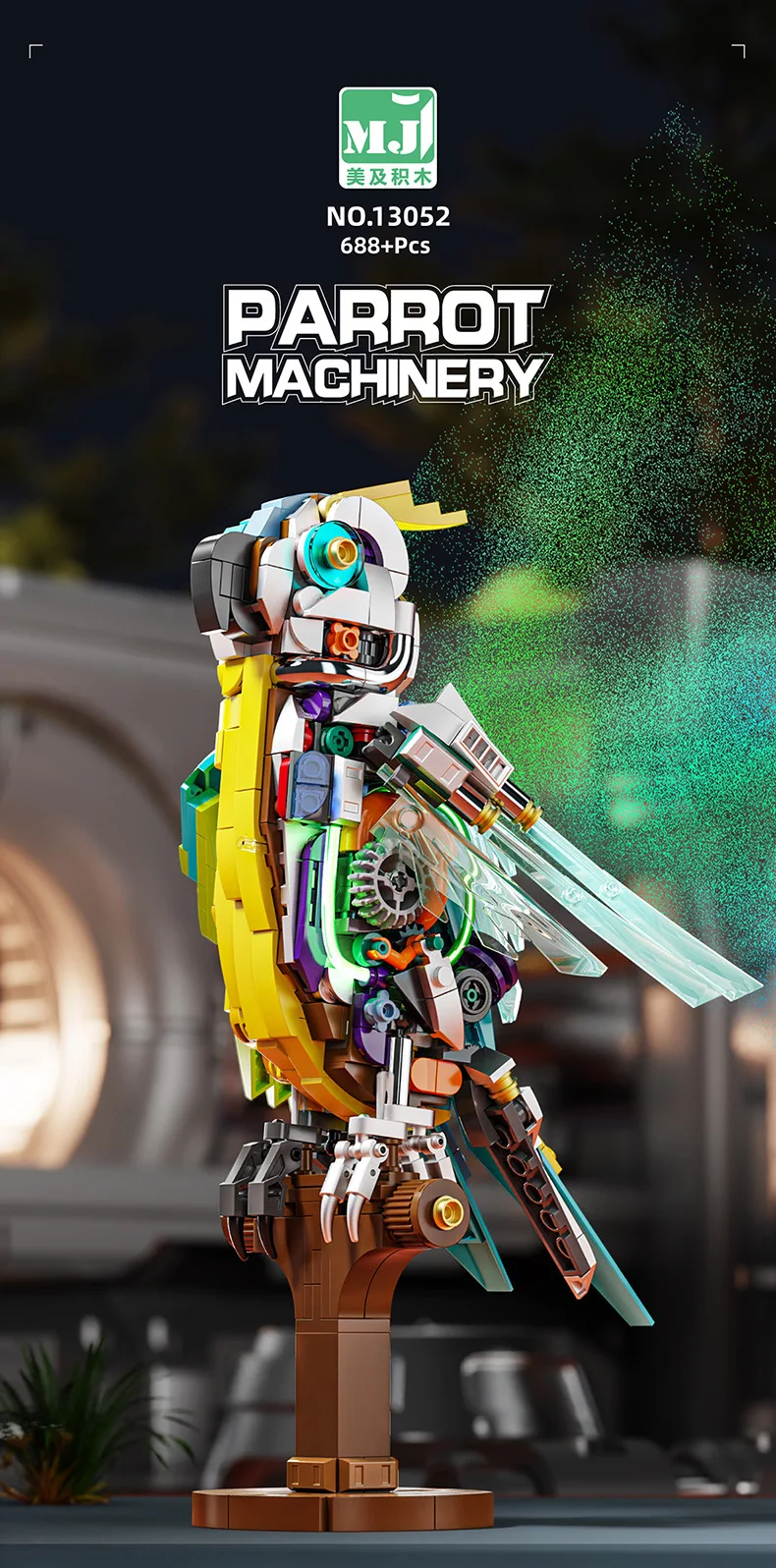 Semi-mechanical linkage parrot compatible Le particle building block model toy