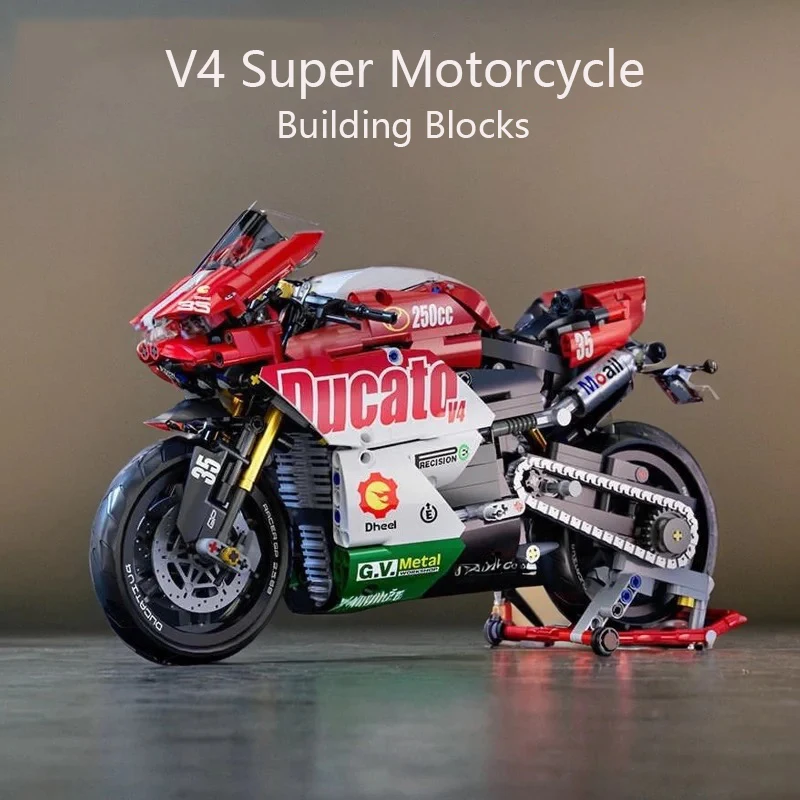 V4 Motorcycle Building Blocks Set Super Motorbike Model Kit Technical Racing Kids Assembled Toys Gifts For Boys Girls